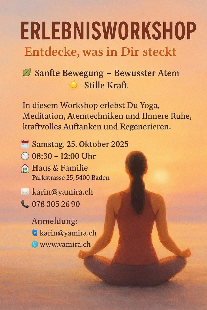 Ein achtsam gestalteter Erlebnis-Workshop, der Yoga, Meditation, Atemtechniken und Sitting in the Power sanft miteinander verbindet.